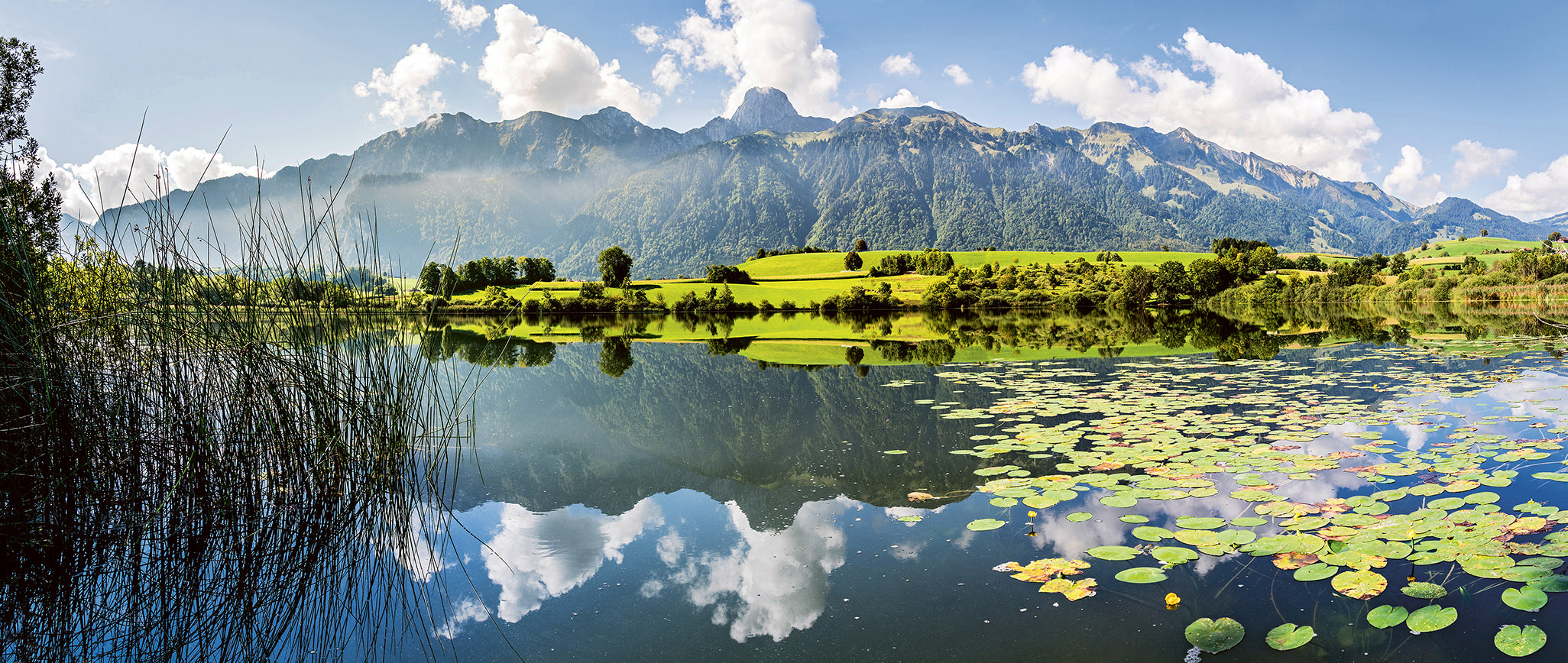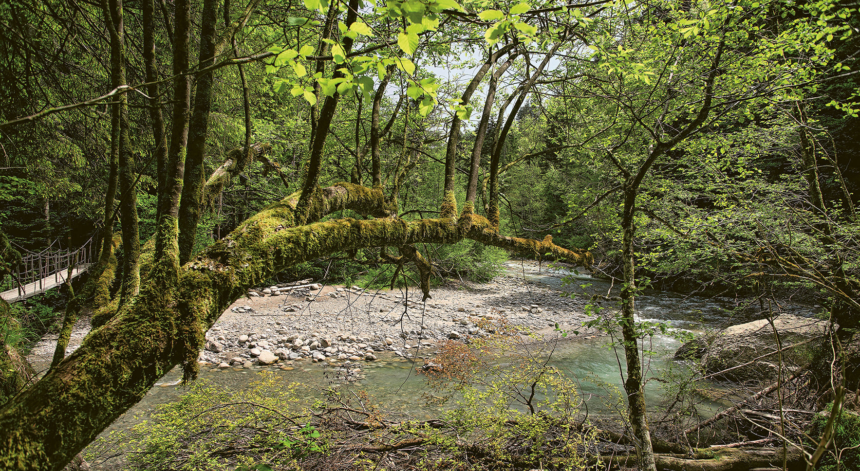 Doch nicht nur die Aare bietet einen äusserst beschaulichen Anblick, während sie das Berner Oberland durchfliesst. Auch der Glütschbach wartet mit märchenhaften Uferbereichen auf. Er entspringt auf 1700 Metern Höhe als Feusibach, trifft auf dem Gebiet der Gemeinde Reutigen auf den Fluhbach und wird zum Glütschbach.