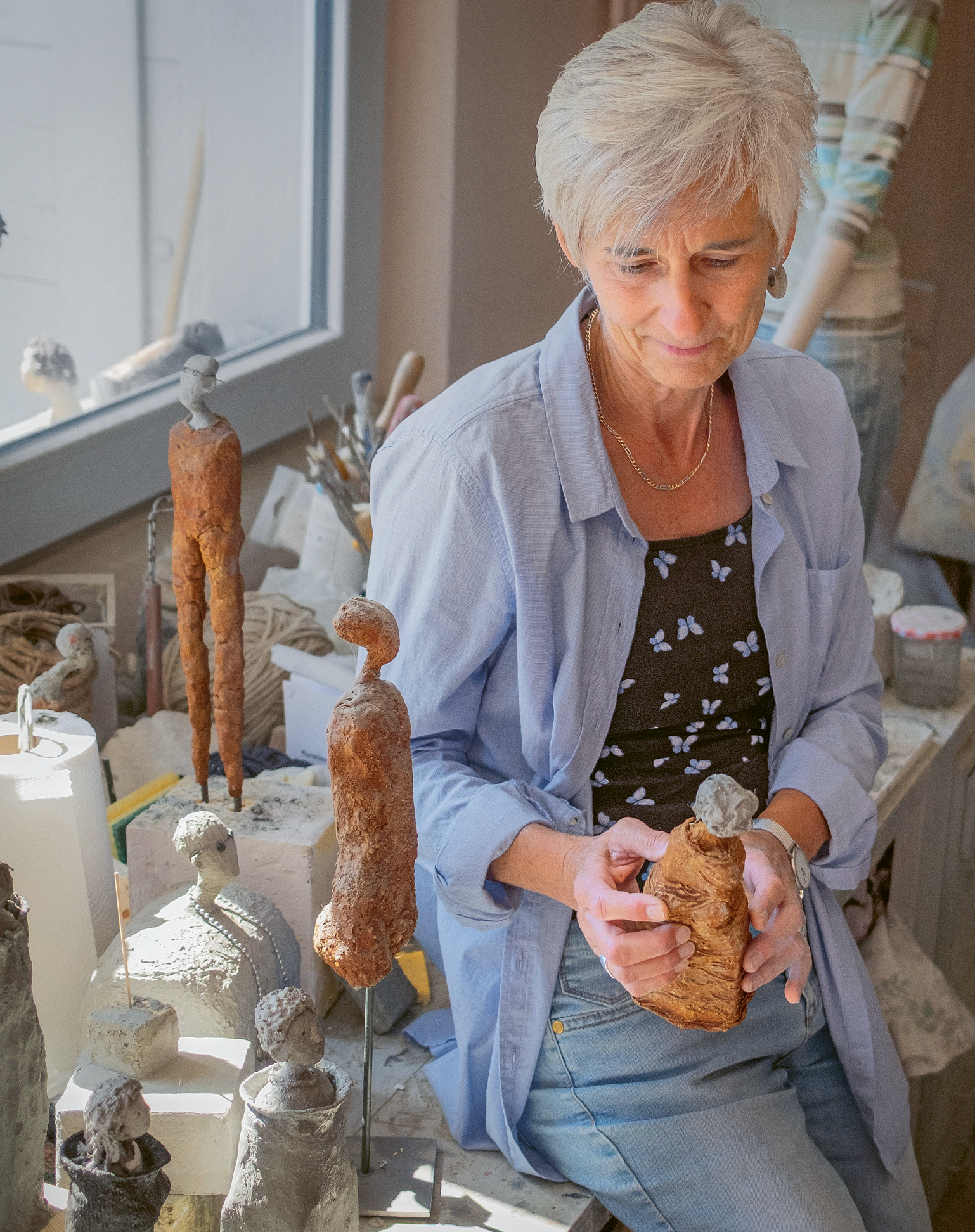 Zur Kunst kam sie 2008 eher zufällig über einen Kurs bei Martin Stucki. «Schon am ersten Tag wusste ich: Das ist meins.» Seither probierte sie vieles aus – bis sie ihre eigene Handschrift fand: die Figuren. «Früher dacht ich, ich sei nicht kreativ. Heute weiss ich: Genau das bin ich.»