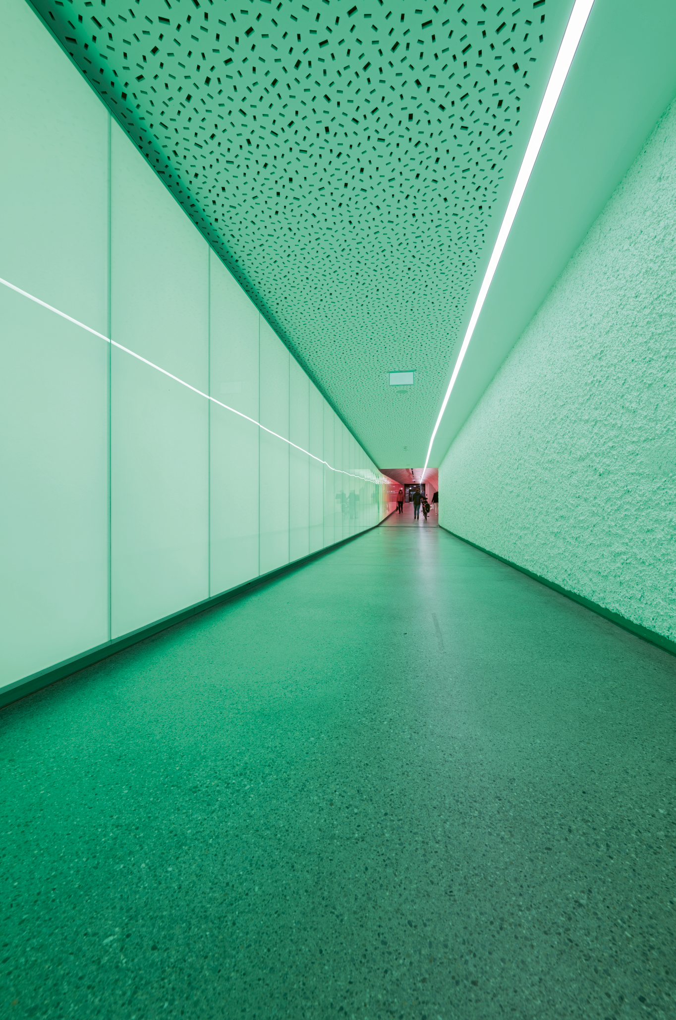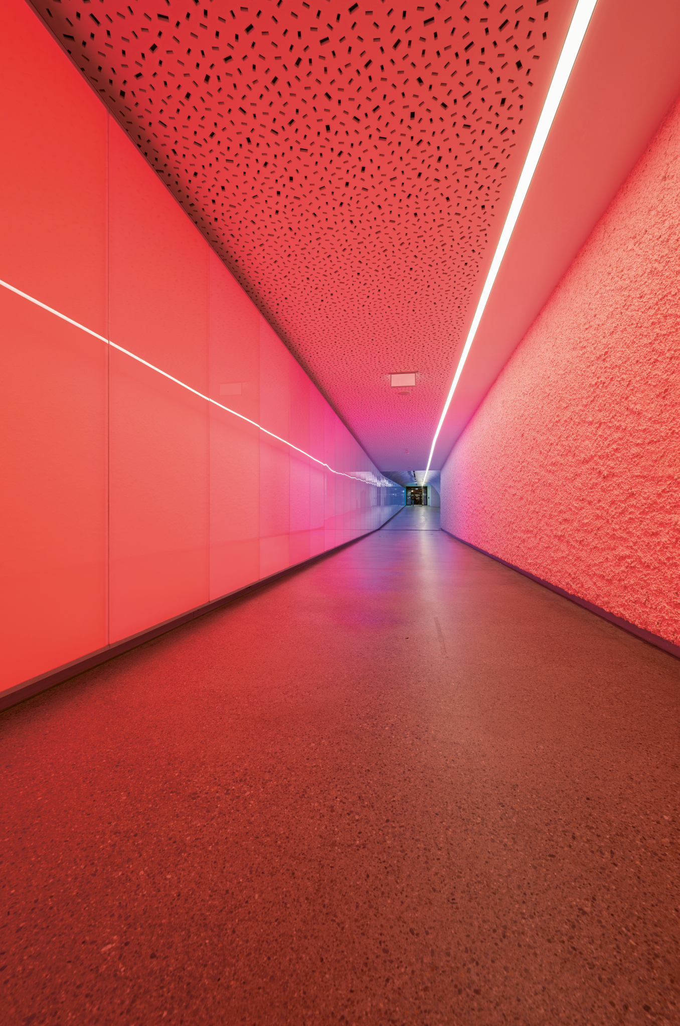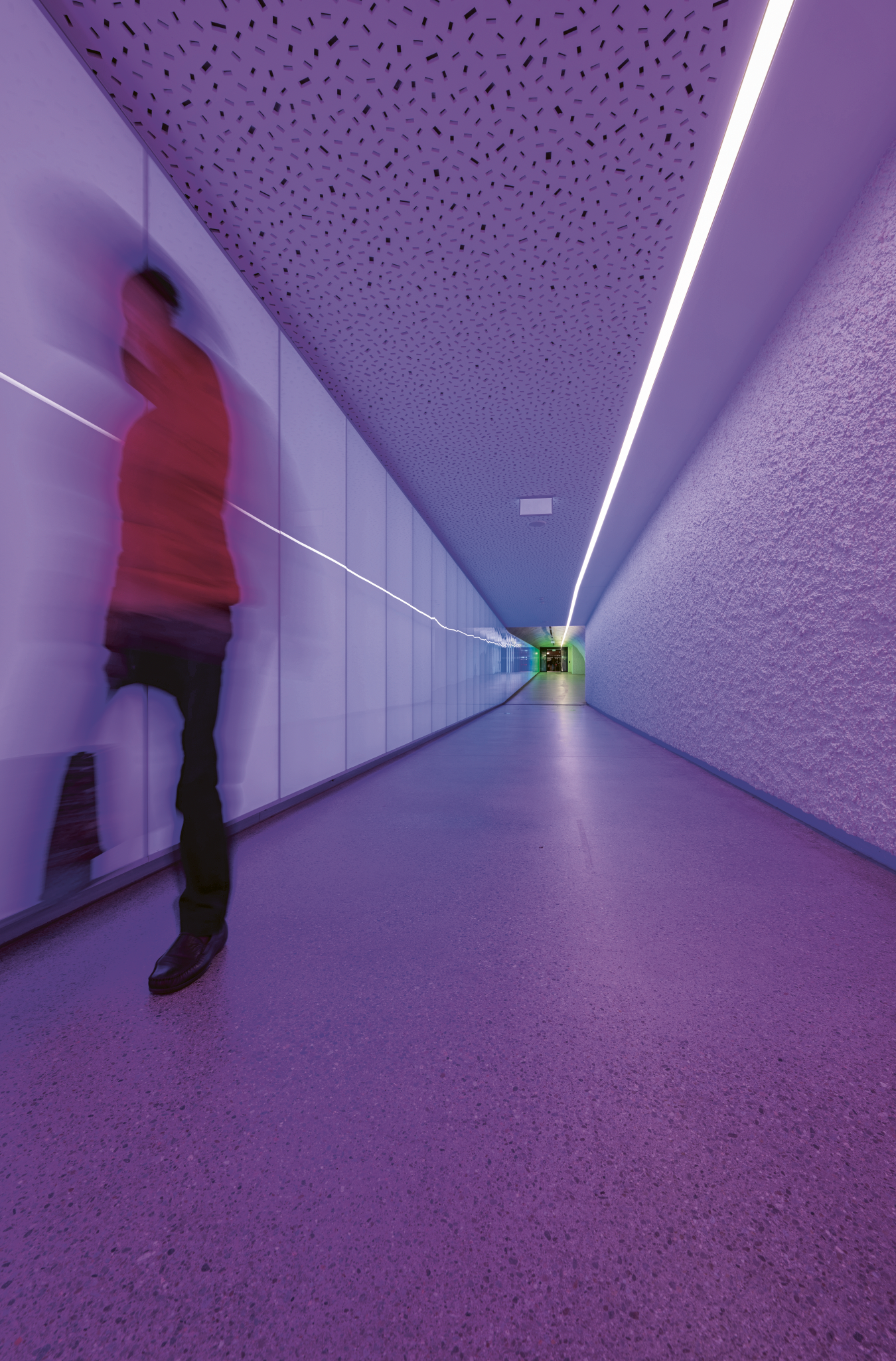 The heart of the car park ring is the most recently opened City Ost Schlossberg, which particularly stands out due to its 100-metre-long pedestrian passageway with its incomparable light installation. It consists of illuminated panels that accompany visitors through the passageway in a rainbow sequence. This is not only a unique connecting route, but, together with the frequently used lift to the castle hill, it has been created as a special parking experience. As Managing Director Katharina Fahrni says, «Even parking should be a pleasant experience. That is what we consider our mission.»
